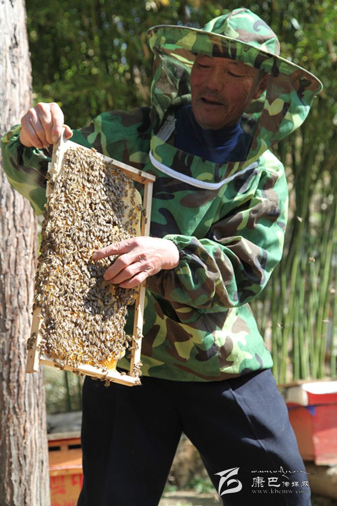 1974年,因?yàn)轲B(yǎng)蜂,高廷明成了割“尾巴”的對(duì)象,被連續(xù)批斗了好幾個(gè)晚上。但所有這些,都沒有阻擋他養(yǎng)蜂的喜好,反而激發(fā)了他發(fā)展壯大養(yǎng)蜂業(yè)的欲望。“我們這里有桃花、李花、金銀花、油菜花,山上還有成片的五倍子花,五倍子花粉成糖顏色最好,金銀花蜜則有藥用價(jià)值。養(yǎng)蜂講究‘三睛兩雨’,最好是晚上下雨,白天出太陽(yáng),這種天氣花粉最好,產(chǎn)糖高。由于人手不夠,我都采用小轉(zhuǎn)場(chǎng)放蜂,一般只轉(zhuǎn)場(chǎng)兩、三公里,走遠(yuǎn)了一個(gè)人不方便。采蜜時(shí)要把準(zhǔn)季節(jié),要不然會(huì)出現(xiàn)人與蜜蜂搶蜜的現(xiàn)象,說不定還會(huì)被蜜蜂蟄傷。”在院子后面的一片樹林里,高廷明一邊分蜂一邊對(duì)記者說。他還告訴記者,雖然自己天天與蜜蜂打交道,這些有靈性的小家伙似乎已經(jīng)習(xí)慣主人的氣味,但自己還是被蜜蜂蟄傷過。每次被蜜蜂蟄傷時(shí),家里的碘酒就派上了用場(chǎng)。