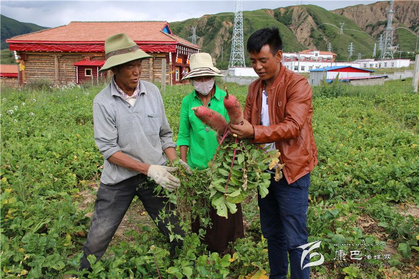 巴青(右一)正在拔蘿卜。