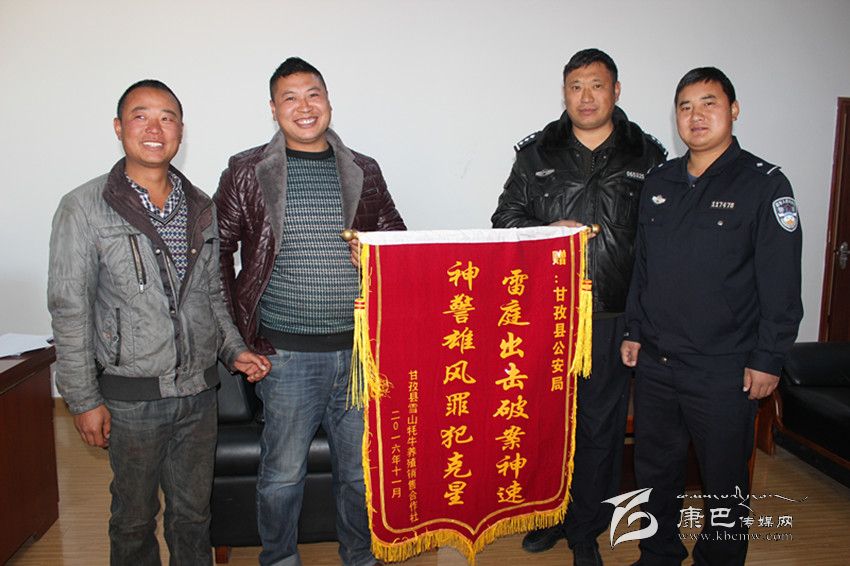 本網(wǎng)訊(余應瓊 文/圖)11月11日,甘孜縣雪山牦牛養(yǎng)殖銷售合作社負責人鄭萬強將一面繡有“雷霆出擊破案神速 神警雄風罪犯克星”的錦旗送到縣公安局,表達對公安干警迅速破案,幫助貧困群眾挽回經(jīng)濟損失的感激之情。