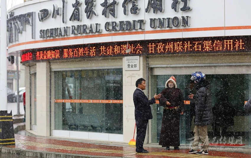 去年歲末年初,大雪紛飛,石渠縣城的商店已是關(guān)門閉戶。而為盡快讓農(nóng)牧民群眾順利領(lǐng)到國家惠民補(bǔ)貼,信用社同事們一個(gè)不少地集中在營業(yè)部為農(nóng)牧民群眾辦理支取、轉(zhuǎn)賬等業(yè)務(wù)。雖然能開的取款點(diǎn)窗口已經(jīng)全開,大家也攢足了勁兒地工作,可取款的隊(duì)伍依然從營業(yè)室延伸到了大雪中……。想著遠(yuǎn)在幾十公里外洛須分社檢查工作的起麥郎加,營業(yè)部主任許琪趕緊給他打個(gè)電話?!捌鸶?,你那邊檢查還順利嗎?”許琪有些忐忑,不好意思“催”他回來?!安畈欢嗔恕V皇茄┰絹碓酱?,暫時(shí)走不了……”起麥郎加向許琪說起外面的情況。他們都知道,高原降雪時(shí),是不宜趕路的,說不準(zhǔn)什么時(shí)候暴雪來臨,就會(huì)被困半路?!敖裉炷芑貋韱??”高原地區(qū)本有個(gè)不成文的“規(guī)矩”,為了路途安全,一般下鄉(xiāng)是不催促的,可許琪還是忍不住多問上一句?!笆呛苊??我馬上回來……”起麥郎加斬釘截鐵地表示馬上返城,他知道家中(單位)一定是很忙,需要幫手。他心里清楚,只有趕緊回到營業(yè)部,才能多為大家分擔(dān)一些工作,才能讓農(nóng)牧民群眾盡快取到款。