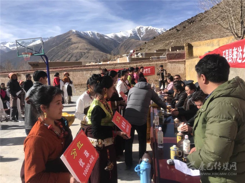 上午11時,一村支部書記其呷扎西大聲宣讀分紅金額,并依次將紅包遞到每位社員手中?!吧硤鼋ǔ珊?,不僅有扶貧產(chǎn)業(yè)周轉(zhuǎn)金入股,還有致富帶頭人帶頭干,生產(chǎn)、銷售都不用自己操心,而且在沙場干活不僅有工資,年終還能分紅,收入比起以前高了很多,我們再也不用發(fā)愁沒有門路打工掙錢了?!必毨罕姾腿牍扇罕娔弥值降募t包后高興地對筆者說。