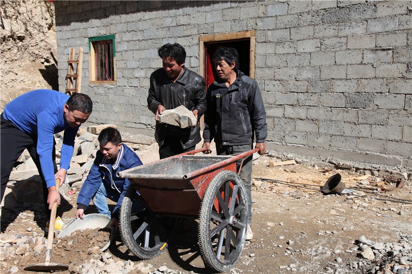 俗話說,一方水土養(yǎng)一方人,當(dāng)一方水土不能養(yǎng)活一方人時(shí),移民搬遷就成了最好選擇。這個(gè)行動遲緩的中年男子名叫洛絨,今年48歲。他眼前的這幢建筑面積100平方米的磚混結(jié)構(gòu)單層房子,盡管室內(nèi)地面還沒灌注水泥,房內(nèi)還沒裝修,但他對即將入住新房的那份喜悅一覽無余:“你看,這房子的前面是河、后面是山,太陽一出來就能照著,住起來肯定舒服;這三間房子就有四個(gè)大窗戶,光線照得進(jìn)來,里面肯定亮堂;這一進(jìn)門就是客廳,兩邊各有一套大大的房間,裝修好后只要把家具家電一擺上,肯定漂亮;……”正當(dāng)他說得津津有味時(shí),鄉(xiāng)上負(fù)責(zé)易地扶貧搬遷干部馬煜和包村干部鄭剛突然出現(xiàn)了他的眼前,他滿是感激地說:“其實(shí),我知道你們都很忙,用不著隔三差五過來幫我,我保證十天之內(nèi)就把地面填平。況且再過幾天,我愛人就從山上挖蟲草回來了。有她打下手,兩個(gè)月內(nèi)我們一家人肯定就能住進(jìn)新房子啦!”
