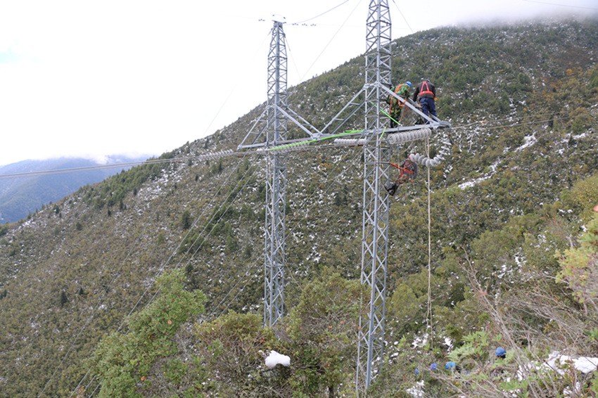 災(zāi)情發(fā)生當晚,國網(wǎng)甘孜供電公司連夜組織多支應(yīng)急搶修隊伍,共計人員120余人、工程搶險車22輛趕赴現(xiàn)場,冒著雨雪對故障線路進行巡視,查找故障點。由于夜間大霧加雪,能見度低,搶險車無法開上鄉(xiāng)間小路,搶修人員只能攜帶著工器具徒步巡視,搶修人員深一腳淺一腳地走在又冷又滑的雪地里,打著電筒仔細查看每一基桿塔、每一處開關(guān)。經(jīng)過連續(xù)8小時的奮戰(zhàn),終于找到故障點,于4日下午4時全面恢復(fù)供電。