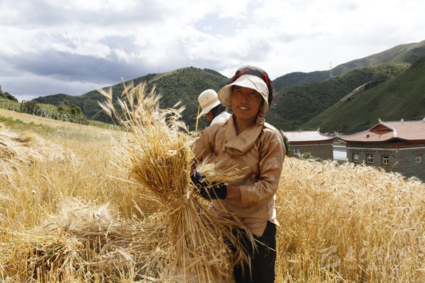 據(jù)包村干部慈仁佳措介紹,黑青稞是有機(jī)粗糧,而木弄村種出的黑青稞是康定折多山以西片區(qū)最好的,顆粒飽滿,口感較好?!暗^去市場太小,交通閉塞,農(nóng)戶大多是把黑青稞存在家里自給自足。但我們這里最大資源就是黑青稞,所以我們想幫助農(nóng)戶實現(xiàn)黑青稞價值最大化。”慈仁佳措說,“2017年底,與洞波酒業(yè)公司簽了黑青稞種植合同,我們村種植了1000畝。”