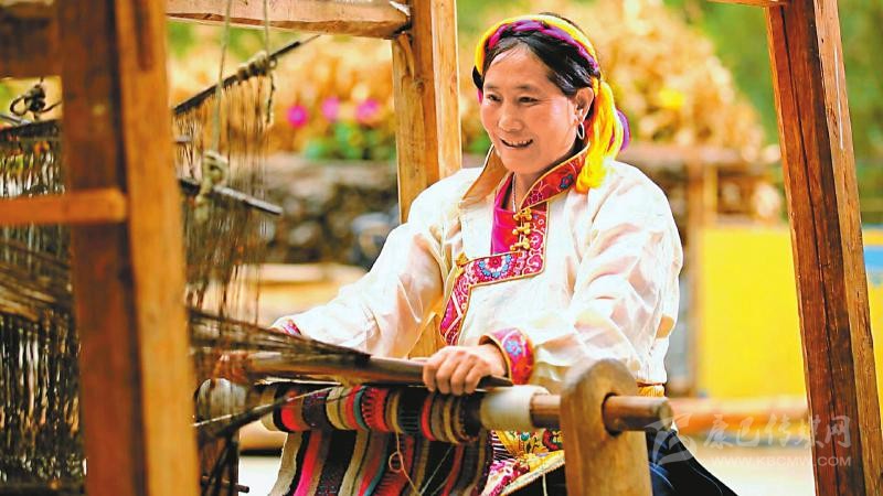 編織藏毯的湯古木雅藏族群眾。 (九龍縣融媒體中心供圖)