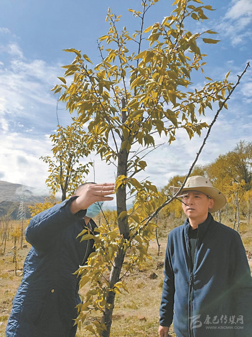 爐霍縣林草局技術(shù)人員檢查杏樹(shù)病蟲(chóng)害情況。 爐霍縣林草局 供圖