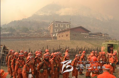 爐霍專業(yè)森林撲火隊(duì)隊(duì)長(zhǎng)阿代介紹說(shuō):“接到命令后,我們立刻組織34名撲火隊(duì)員,緊急出動(dòng)四輛森林消防車(chē)和一輛行動(dòng)車(chē)趕赴火場(chǎng)。因火場(chǎng)山高路陡,撲火器材只能用人工的方式運(yùn)送到一線,70公斤的器材兩個(gè)人扛,15斤一盤(pán)的水袋一個(gè)人一次背兩三盤(pán),有的地方需要涉過(guò)刺骨冰冷的河水到達(dá)一線,許多隊(duì)員都出現(xiàn)了體力透支的現(xiàn)象,但沒(méi)有一個(gè)人叫苦喊累。”