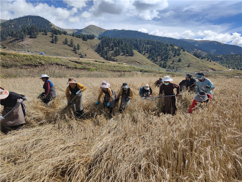 “增德村距鄉(xiāng)衛(wèi)生院差不多有6公里左右,衛(wèi)生院醫(yī)護人員每天到秋收現(xiàn)場對群眾進行核酸檢測,解決了秋收期間群眾兩頭跑的實際問題,現(xiàn)在鄉(xiāng)干部又來幫助我們秋收,今年豐收應(yīng)該沒有問題。”曾德村黨支部書記格桑甲措說。
