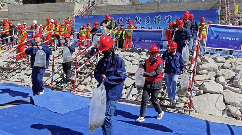 “今年放流的魚苗種類繁多,有四川裂腹魚、短須裂腹魚、長絲裂腹魚、裸腹葉須魚、軟刺裸裂尻等,其中,裸腹葉須魚為中國瀕危動物紅皮書‘易?!~類,四川裂腹魚為四川省重點保護魚類。”華電金上葉巴灘分公司負責人說,為減少工程建設對魚類及水生生物的影響,公司建立了萬里長江第一級魚類增殖放流站,是國內首個截流當年開展增殖放流的水電站,自2019年首次舉辦試驗性增殖放流活動以來,累計放流106萬尾特有珍稀魚苗。同時為進一步推進金沙江魚類種群恢復、水域生態(tài)環(huán)境的改善,公司還追加了1.7億元的環(huán)保投資,增設了一臺生態(tài)備用機組,提高運行期生態(tài)下泄流量的安全度和保證率。聯(lián)合華中農業(yè)大學開展黃石爬鮡、姚氏高原鰍等遠期放流魚種人工繁殖技術研究,采取分層取水技術,有效改善水庫下泄水溫,為魚類繁殖生存提供適宜條件。