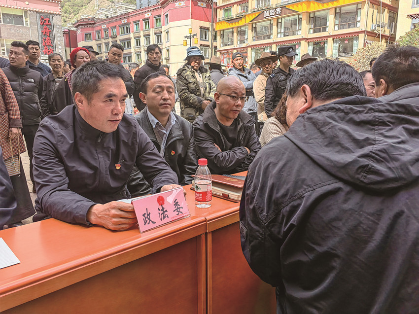 政法委員統(tǒng)籌調(diào)度,充分發(fā)揮鄉(xiāng)(鎮(zhèn))政法委員統(tǒng)籌作用,搭建以網(wǎng)格員、人民調(diào)解員、綜治員等的基層聯(lián)絡(luò)群,協(xié)同法庭法官、駐鄉(xiāng)檢察官、轄區(qū)民輔警等進(jìn)村組(社區(qū))、進(jìn)學(xué)校、進(jìn)寺廟、進(jìn)工地、進(jìn)蟲草山等地,常態(tài)化摸排掌握社情民意,確保及時發(fā)現(xiàn)矛盾隱患,打通基層社會治理的堵點(diǎn)和難點(diǎn),助力實(shí)現(xiàn)“小事不出村、大事不出鎮(zhèn)、矛盾不上交”目標(biāo)。