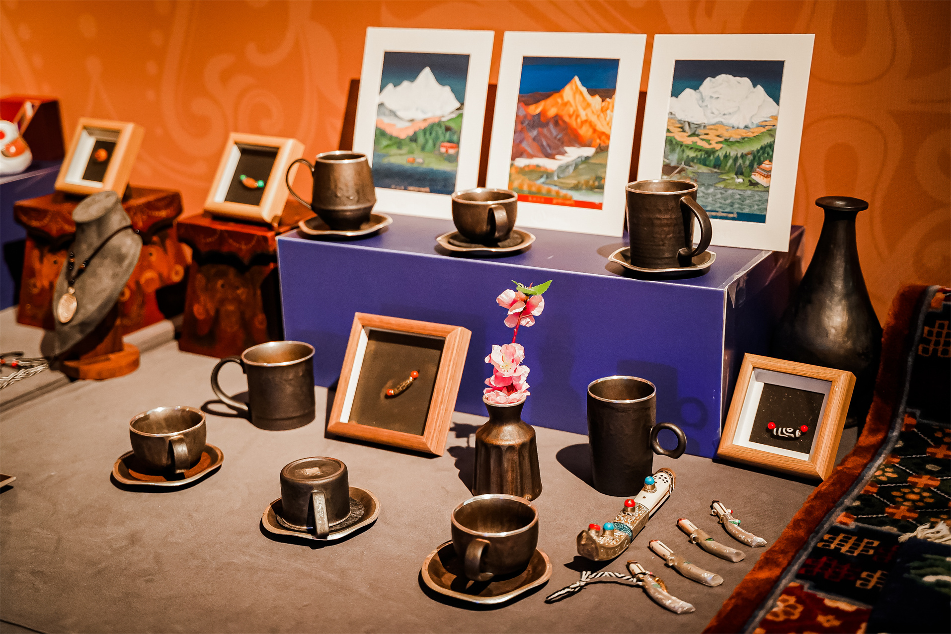 本次展覽中,非遺展共計(jì)展出160余件非遺展品,包括唐卡、金屬鍛造、丹巴刺繡、藏文書法、藏香、藏紙、木雕(經(jīng)板雕刻)、麥宿黑陶、藏族彩繪等;旅游圖片展共計(jì)展出100余幅精美圖片,包括風(fēng)光、人文、民俗等。