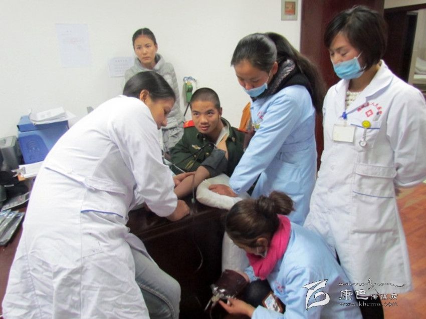 10月20日17時(shí)20分,武警甘孜支隊(duì)稻城縣中隊(duì)官兵像往常一樣正在收看新聞聯(lián)播,突然一陣急促的集合哨音劃破了營(yíng)區(qū)的寧?kù)o。隊(duì)列前,該中隊(duì)指導(dǎo)員秦勇面色凝重的說道:“同志們,剛接到縣人民醫(yī)院求救電話,現(xiàn)有一名游客因胃病引出大出血,面臨生命危險(xiǎn),急需O型血搶救,醫(yī)院血庫(kù)O型血告急。”“我去、我去、我去……”,指導(dǎo)員話音剛落,6名符合獻(xiàn)血條件的戰(zhàn)士便爭(zhēng)先恐后的報(bào)起名來(lái)。