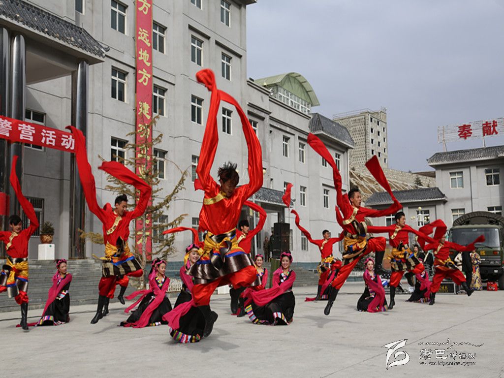 演出活動(dòng)在充滿藏族民族風(fēng)情的男女群舞《吉祥頌》中拉開帷幕,節(jié)目一開始,演員們激昂的熱情、優(yōu)美的舞姿給觀眾們帶來了美的享受,女子獨(dú)唱《納西情歌》《套馬桿》、男生獨(dú)唱《吉祥謠》、女子群舞《情灑康巴》、男子群舞《青春踢踏》、女子快板《甘孜兒女心向黨》等精彩節(jié)目相繼登場,將演出活動(dòng)推向一個(gè)又一個(gè)高潮。特別是由支隊(duì)官兵表演的民族舞蹈《野人狂歡》、表演唱《當(dāng)兵就是帥》等精彩節(jié)目,贏得了觀眾們的陣陣喝彩。雖然天氣異常寒冷,天空還不時(shí)飄起了雪花,但演員們卻一直以飽滿的激情、嫻熟的技藝,為官兵們獻(xiàn)上了一個(gè)又一個(gè)精彩的節(jié)目。整場演出抒發(fā)了駐地群眾對人民子弟兵的深厚情誼和感激之情,表達(dá)了他們對人民子弟兵扎根高原、無私奉獻(xiàn)的欽佩之情,他們用自己的精彩表演,向人民子弟兵致以最親切的問候和最誠摯的敬意。