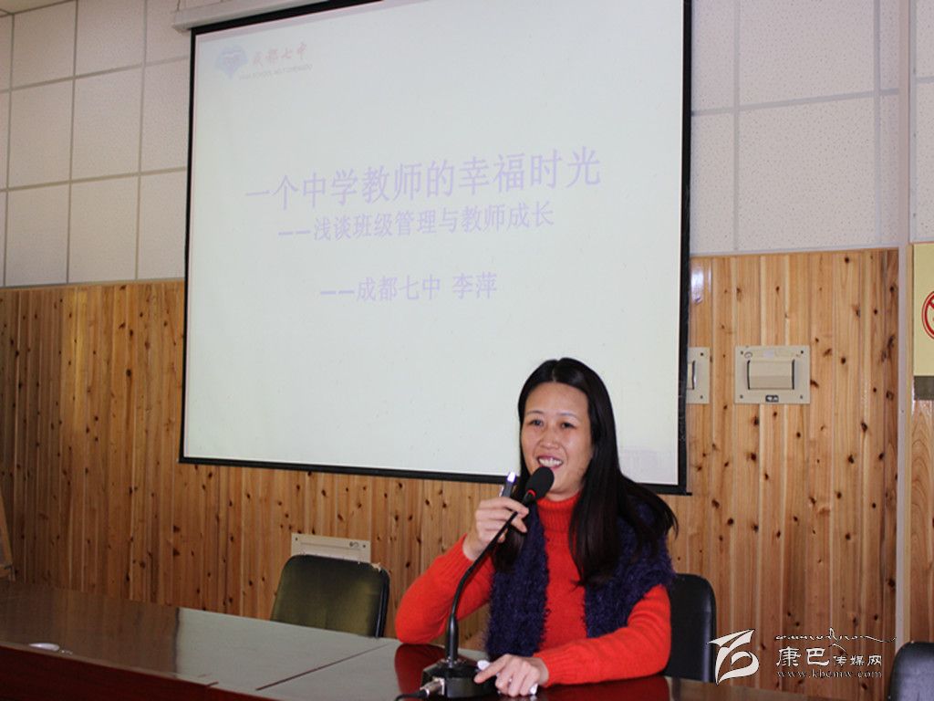 活動(dòng)中,成都七中網(wǎng)校教師分別與康定中學(xué)網(wǎng)課班(云班)教師、學(xué)生開展了交流、觀摩教學(xué)等活動(dòng)。成都七中優(yōu)秀政治教師、班主任李萍還為全校教師作了一堂題為《一個(gè)中學(xué)教師的幸福時(shí)光──淺談班級(jí)管理與教師成長(zhǎng)》的專題講座。講座中,李萍老師以米歇爾訪問七中以及旅美感受為楔子,結(jié)合自己的教育經(jīng)驗(yàn)、親身經(jīng)歷、人生閱歷、工作所得,對(duì)班級(jí)管理及教師成長(zhǎng)進(jìn)行了深入淺出的詮釋,讓全體聽課教師普遍感覺受益非淺。