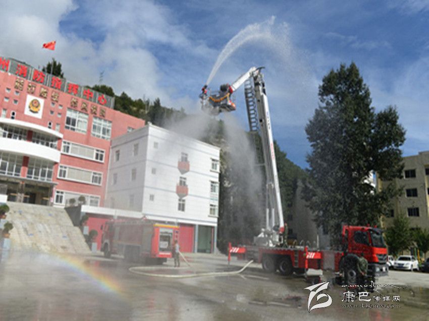本網(wǎng)訊(劉國(guó)謙文/圖)9月8日上午,甘孜消防支隊(duì)操場(chǎng)衛(wèi)聳立著一道“銀色天梯”,筆者在現(xiàn)場(chǎng)目擊了 DG-32C登高平臺(tái)消防車的變形過(guò)程。隨著 4個(gè)支撐架的展開(kāi),車體被架離地面,登高平臺(tái)臂緩緩上升,如“擎天柱”般伸向云端。在兩名駕駛員的配合操作下,平臺(tái)頂端配載的水炮噴射出一條長(zhǎng)長(zhǎng)的水龍,隨著水壓漸漸加大,奔騰的水龍帶著一道彩虹劃過(guò)高空,成為云端深處一道壯觀的麗景。