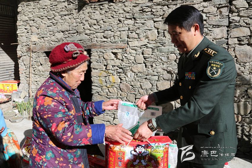 本網(wǎng)訊(余鵬程)在新春佳節(jié)和藏歷新年來臨之際,甘孜軍分區(qū)組成群眾工作小分隊(duì)分,赴康定市雅拉鄉(xiāng)頭道橋村幫扶對(duì)子家中,為他們送去大米、清油等慰問品、慰問金以及新春祝福。圖為軍分區(qū)政治部主任廖輝向幫扶對(duì)子贈(zèng)送慰問品。