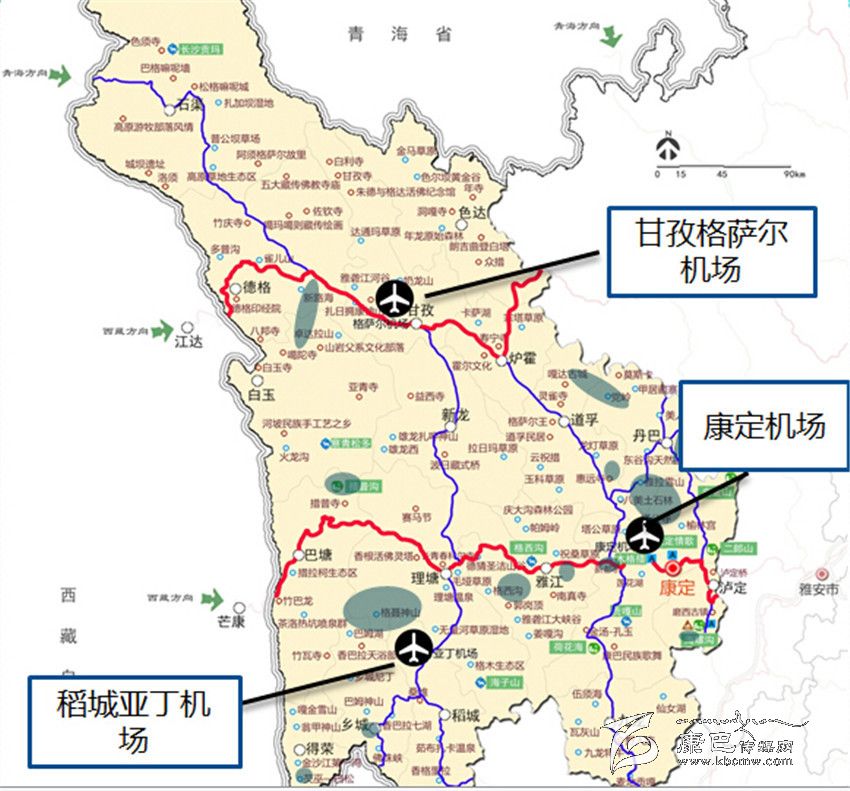 甘孜機(jī)場(chǎng)區(qū)位圖?!】刀C(jī)場(chǎng)集團(tuán)公司供圖