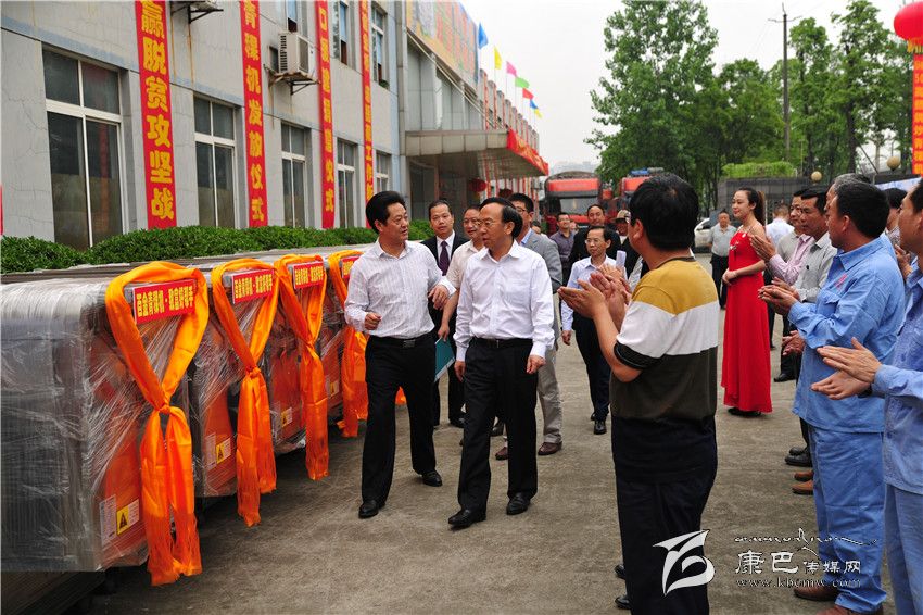 成都市委常委謝瑞武宣布50套全自動高頻青稞烘炒機啟運甘孜州。