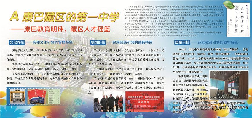 輝煌業(yè)績俱往矣,而今邁步從頭越??刀ㄖ袑W(xué)成功創(chuàng)建四川省一級示范性普通高中,康定中學(xué)歷史翻入新的一頁。學(xué)校將圍繞“建盛德實學(xué)康中校,做豪邁和美康中人”的“康中夢”,把康中打造成全州基礎(chǔ)教育窗口、全省中學(xué)教育名校、全國藏區(qū)教育典范。