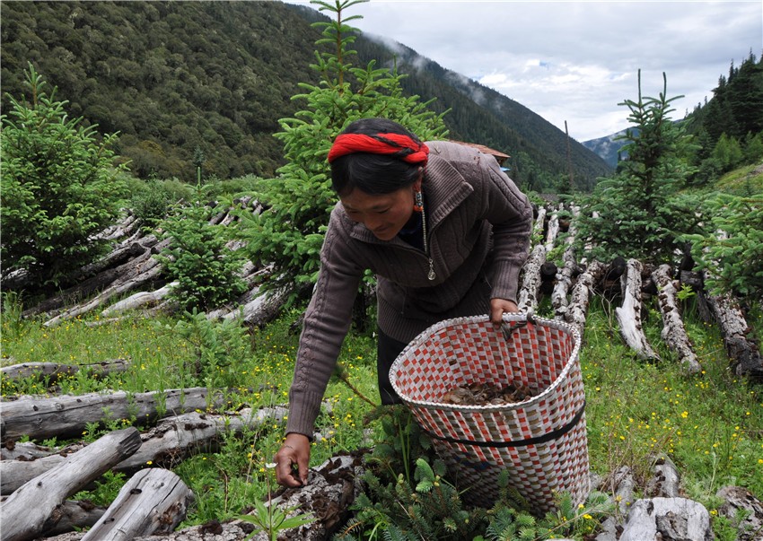 理塘縣下木拉鄉(xiāng)上馬巖村村民采摘黑木耳。