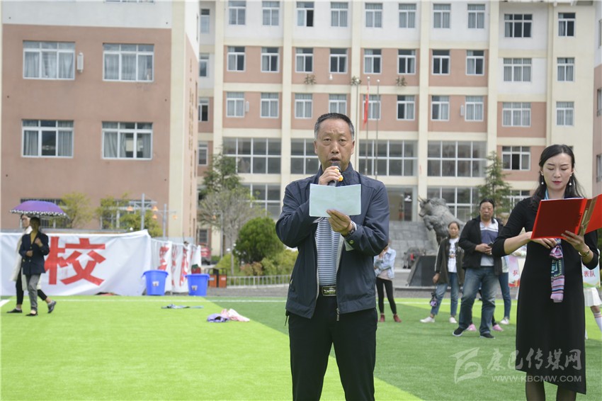 裁判長——四川民族學(xué)院體育學(xué)院黨總支書記陽源宣布成績。