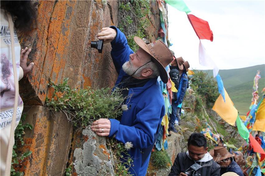 專家學者考察石渠巖畫。