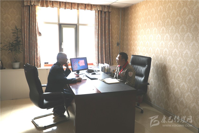 稅務(wù)局紀(jì)檢組長(zhǎng)岑領(lǐng)(左)與鑫源礦業(yè)財(cái)務(wù)負(fù)責(zé)人劉德山(右)對(duì)接減稅降費(fèi)相關(guān)工作。