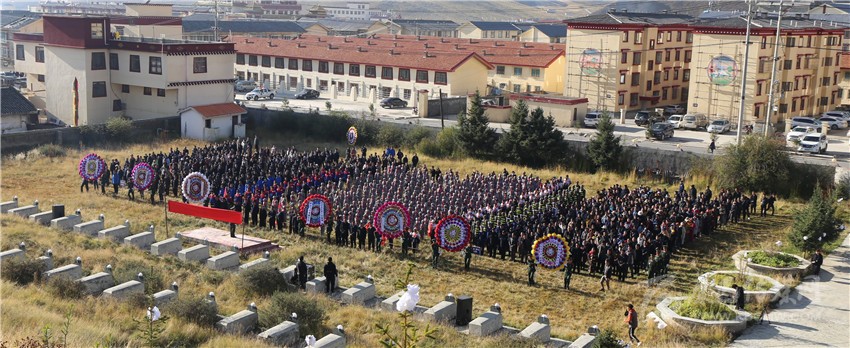 甘孜縣向烈士敬獻(xiàn)花圈活動現(xiàn)場。
