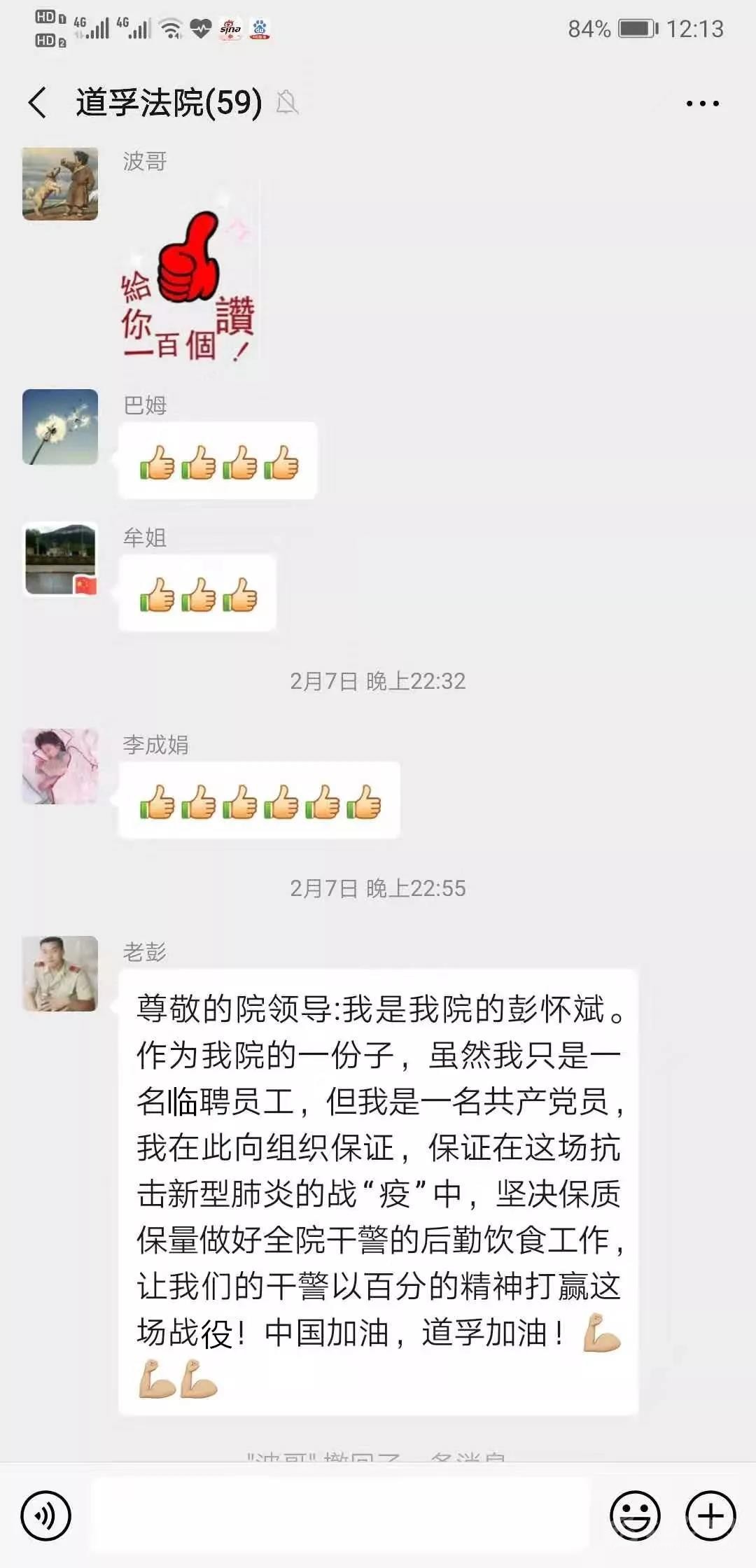 彭懷斌向院黨組作出鄭重承諾:“作為我院的一份子,雖然只是一名臨聘員工,但我是一名共產(chǎn)黨員,我在此向組織保證,保證在這場抗擊新冠肺炎的戰(zhàn)‘疫’中,堅決保質(zhì)保量做好全院干警的后勤飲食工作,讓我們的干警以百分的精神打贏這場戰(zhàn)役!中國加油!道孚加油!” 特殊時期,為了保證食材的絕對安全,廚房沒有幫手,所有工序都需要他一手一腳完成,任務(wù)有多重可想而知。