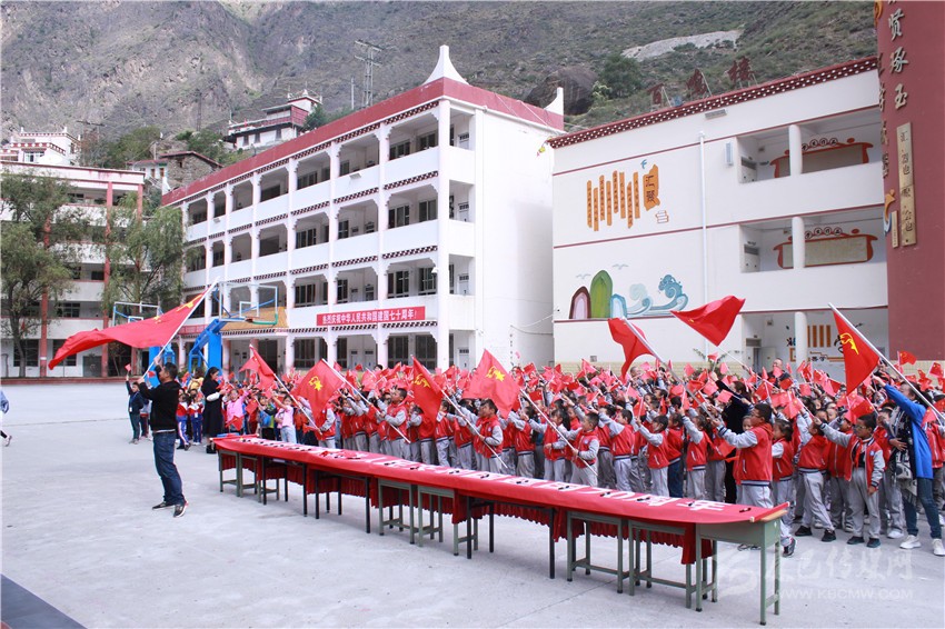 圖為丹巴縣川口寄宿制學(xué)校正在開展愛(ài)國(guó)主義教育活動(dòng)。 丹宣 圖