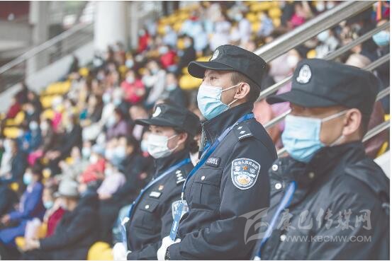 “請出示你的身份證,配戴好口罩?!薄按蟾缒阏义e方向了,你是往那邊走?!薄鞍荩愕奈恢檬峭筮呑?。”……在北門體育場,民警除了安保執(zhí)勤以外,還幫助行動不方便的群眾找尋座位,或為咨詢的群眾答疑解惑。