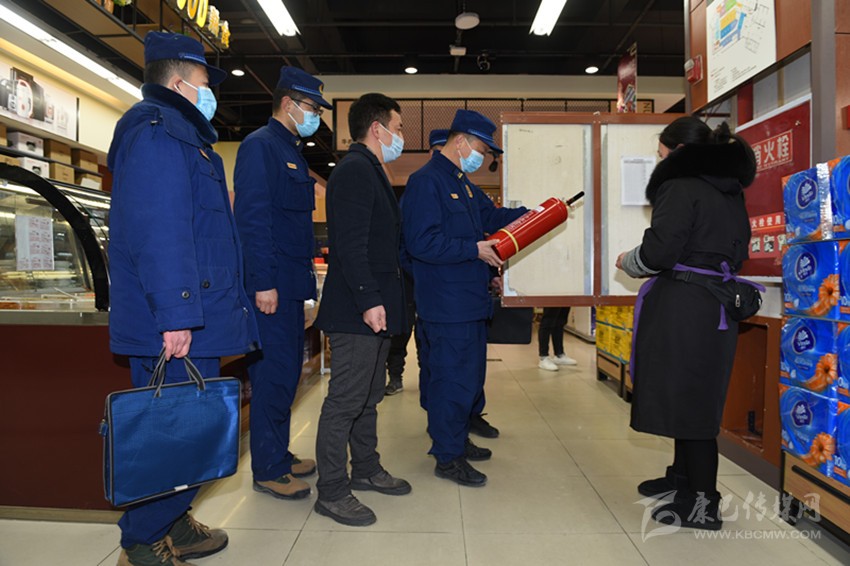 圖為檢查組工作人員對(duì)人員密集場(chǎng)所進(jìn)行消防安全隱患排查。