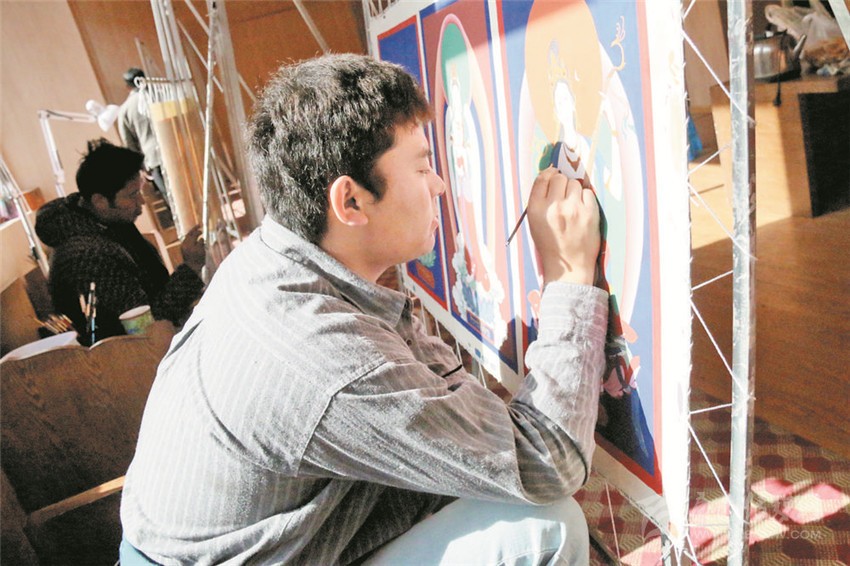 和沖翁青批一樣,在該體驗館工作的畫者有8位。自體驗館建成后,他們每天都在這里作畫?!拔覀兊挠唵翁嗔?,有時候根本畫不完?!?沖翁青批告訴記者,如今,自己的收入增加了不少,唐卡技藝也有所提高。