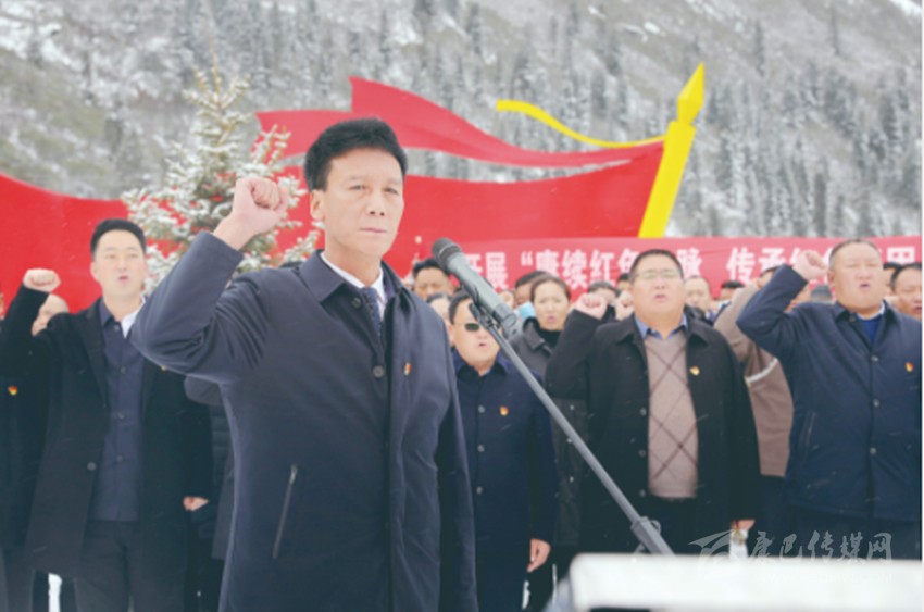 德格縣委書記昌呷次稱(前)率黨員干部開展黨史學習教育活動。
