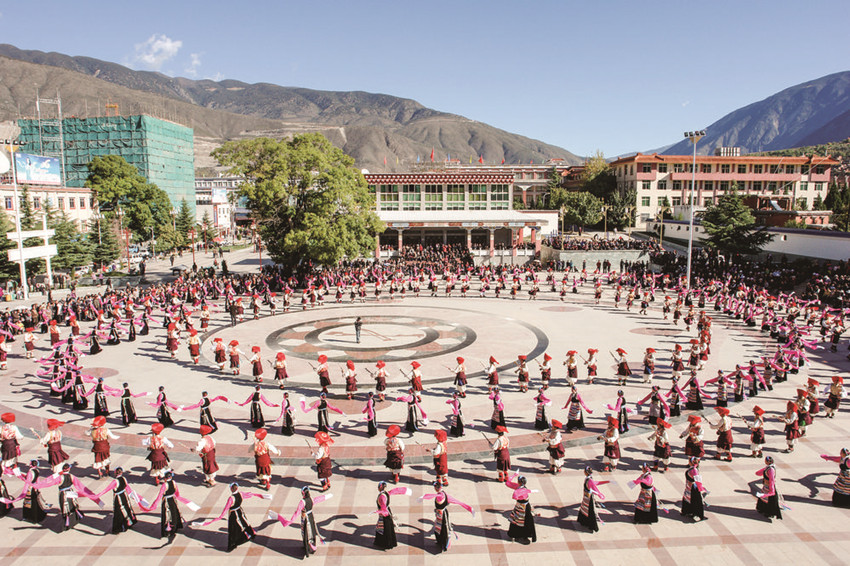 甘孜州有藏、漢、彝、羌、納西、回等20多個(gè)民族,其中藏族人口占81.5%。從古至今,甘孜大地各族群眾交往交流交融,各族群眾“同唱一首歌、同跳一支舞、同吃一桌飯”成為習(xí)以為常的生活場景,人心凝聚、團(tuán)結(jié)奮進(jìn)的精神紐帶更加牢固。
