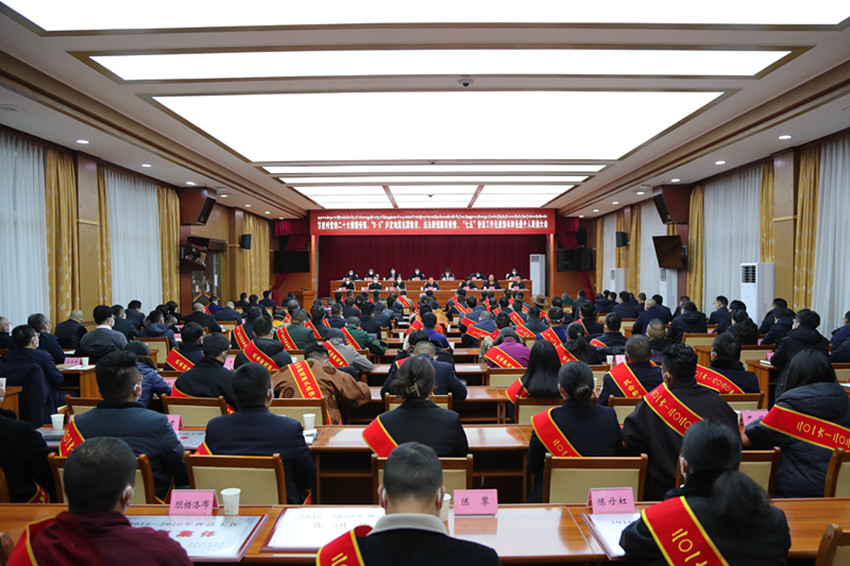 向退休職工敬獻哈達。