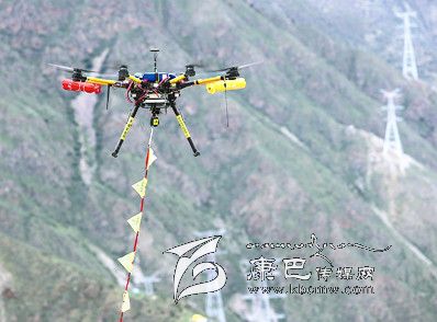 為應對復雜地形和氣候環(huán)境,四川送變電公司使用了由四川電力應急中心自主組裝的高科技“法寶”——八旋翼飛行器。