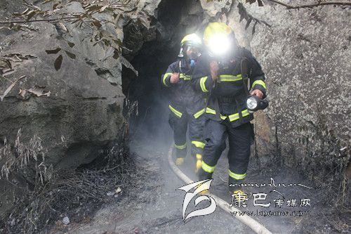 消防官兵在使用有毒氣體探測(cè)儀對(duì)現(xiàn)場(chǎng)氣體進(jìn)行檢測(cè)后發(fā)現(xiàn),雖然煙氣刺鼻,但未檢測(cè)出有毒氣體。在使用排煙機(jī)對(duì)山洞進(jìn)行持續(xù)排煙后,中隊(duì)派出兩名消防官兵佩戴空氣呼吸器和強(qiáng)光燈在水槍的掩護(hù)下進(jìn)入山洞偵查煙氣源。因山洞內(nèi)煙霧大,溫度高,能見(jiàn)度低,第一批消防官兵未能找到煙氣源。在短暫準(zhǔn)備后,第二批消防官兵攜帶相關(guān)器材進(jìn)入山洞繼續(xù)尋找。在距離山洞口十幾米的地方,消防官兵發(fā)現(xiàn)了大量正在燃燒的電纜線(xiàn),經(jīng)初步確定,大量白煙就是電纜線(xiàn)燃燒后產(chǎn)生的。因山洞長(zhǎng)時(shí)間受高溫烘烤隨時(shí)可能倒塌,消防官兵在與當(dāng)?shù)卣?fù)責(zé)人協(xié)商后對(duì)山洞洞口實(shí)施了封閉滅火。