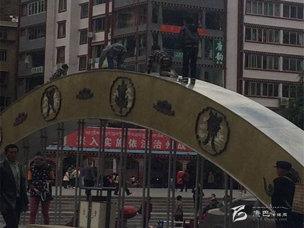 康定彩虹橋是上承式拱橋,橋面較為寬廣,橋上面的兩道彩虹式樣的弧形拱,除了承重,更多的功能便是裝飾。可是11歲的扎西(化名),卻把這兩道弧形拱變成了集“攀巖”與“滑梯”多種功能于一體的游樂設(shè)施。在車輛穿梭的橋面上方,他和伙伴們艱難的克服阻力爬上“制高點(diǎn)”,又在無(wú)任何保護(hù)措施的情況下滑落到人行道上。一遍又一遍,孩子們?cè)趩握{(diào)的重復(fù)中收獲著快樂。“這么危險(xiǎn),就沒有人管了???”“現(xiàn)在的娃娃怎么這么調(diào)皮???”路人對(duì)孩子們的危險(xiǎn)動(dòng)作表示出極大的擔(dān)心。