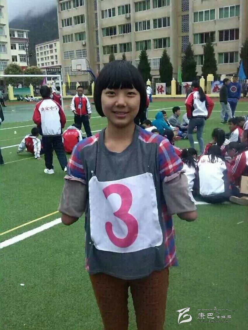在康定中學校園里,你會邂逅這樣一位女孩:臉上永遠燦爛著陽光般的微笑,雙眼永遠閃爍著自信樂觀的光芒。教室里,她聚精會神地聽課;圖書館里,她專心致志地讀書;操場上,她身輕如燕地奔跑;寢室里,她開心爽朗地和同學交流。可你仔細一看,她竟然沒有雙臂,就像折翼的天使。她就是該校高2016屆8班學生,羌族女孩許方燕。行走在高原的風中,她是一幀讓每一個人內(nèi)心泛起感動漣漪的美麗風景……