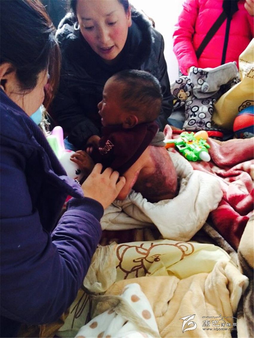 2015年4月25日石渠縣青年志愿者服務(wù)隊普呷看望燙傷男孩,并帶孩子及時入院治療。
