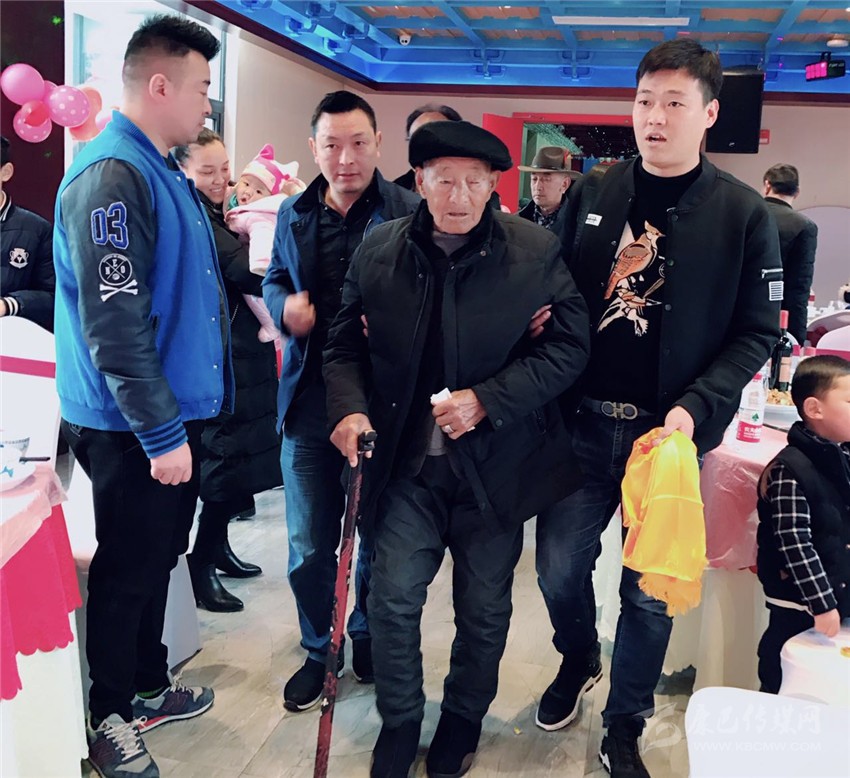 3月5日,在瀘定縣烹壩鄉(xiāng)十里香酒店,按照當(dāng)?shù)貍鹘y(tǒng),王瑞生的兒孫們提前為他隆重過百歲大壽。雖然已近百歲高齡,但王瑞生精神矍鑠,思路清晰,談吐自如,面色紅潤的他身著簡樸,胸前始終戴著2016年由中共中央、中央軍委頒發(fā)的“中國工農(nóng)紅軍長征勝利80周年紀(jì)念章”,接受親友們的祝福?!白D】甸L壽,開開心心”。親人們不絕于耳的祝福,老人心滿意足,笑容滿面?!昂茫?,我的家人團圓和睦,家庭幸福,是我最大的心愿?!比缃?,老人已是四世同堂,家人濟濟一堂,親情流淌,老人幸福開懷。