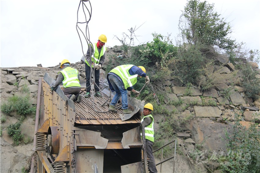 8月25日,塔公村采砂場(chǎng)早已停止了一切生產(chǎn)。記者在現(xiàn)場(chǎng)看到,起重機(jī)正將砂場(chǎng)里10多米長(zhǎng),非常笨重的傳送帶拆放在地上。數(shù)十名村民和工人一起,用挖機(jī)、吊車、氣割機(jī)等設(shè)備將生產(chǎn)砂石的設(shè)備進(jìn)行拆解,拆除的生產(chǎn)設(shè)備、機(jī)械零件整齊地?cái)R置一旁,砂場(chǎng)拆除工作正在安全有序進(jìn)行。望著曾經(jīng)給村民帶來巨大效益的設(shè)備被拆解在地上,塔公村村主任伍金多吉流下了傷心的淚水。