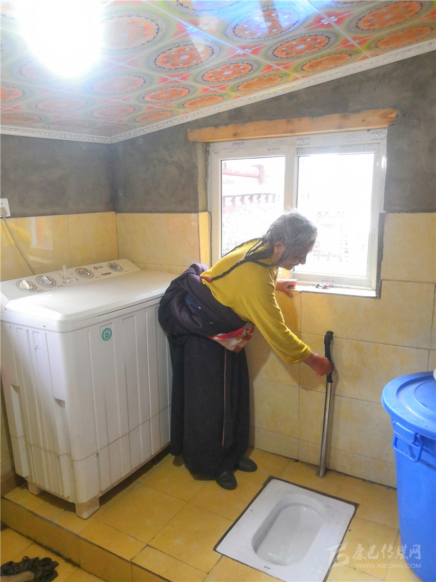 淺棕花紋的地磚、白色的墻磚、沖水式蹲坑、陽光從窗戶上透進來,洗漱臺上洗發(fā)露和香皂整齊的擺放著,24小時供應熱水的熱水器讓人恍惚住在酒店。村民絨熱按一下沖水器,高興地說:“現(xiàn)在家家戶戶都有了新廁所,沖水方便沒有味道,以前只能在電視上看到的廁所現(xiàn)在我們也可以用,自從改造了廁所感覺家里都寬敞了許多。”