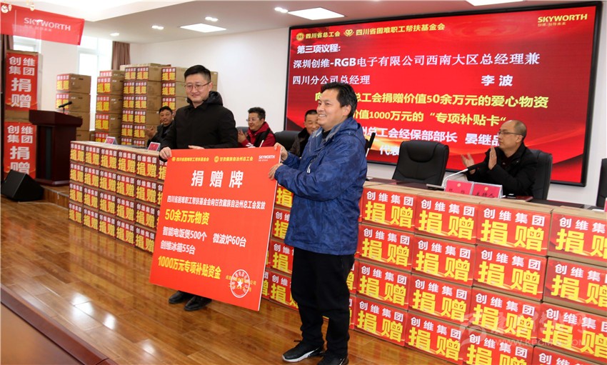 本網(wǎng)訊 12月10日,由四川省總工會(huì)、四川省困難職工幫扶基金會(huì)、甘孜州總工會(huì)、創(chuàng)維集團(tuán)聯(lián)合主辦,康定市總工會(huì)、成都創(chuàng)維電器有限公司承辦的“創(chuàng)維公益萬(wàn)里行、集善幫困暖人心”活動(dòng)啟動(dòng)暨愛心捐贈(zèng)物資康定市發(fā)放儀式在康定舉行,為我州困難職工(農(nóng)民工)捐贈(zèng)價(jià)值50余萬(wàn)元的愛心物資及價(jià)值1000萬(wàn)元的“專項(xiàng)補(bǔ)貼卡”。