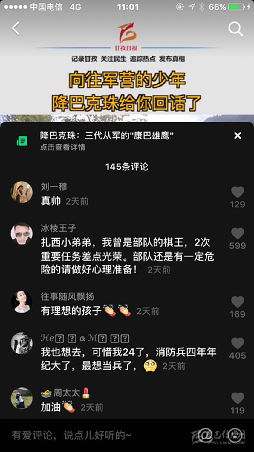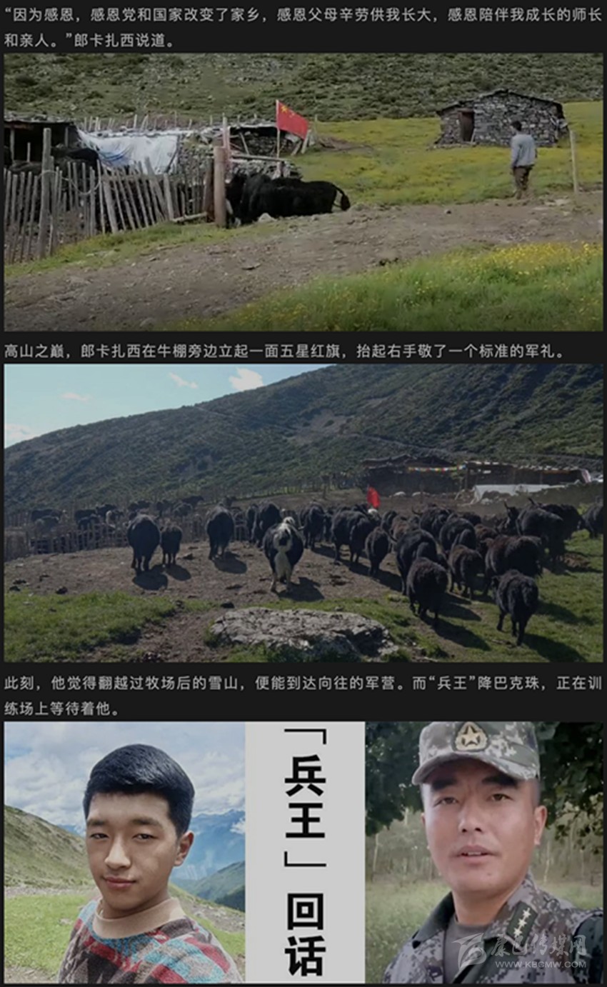 三段視頻,六百多條留言,近兩千萬次播放,一個藏族少年的軍旅夢在網(wǎng)絡上熱烈綻放,而農(nóng)牧區(qū)許多青年的軍旅夢也就此被點燃,忠勇大愛的“血脈”在康巴高原傳承! (本網(wǎng)記者 肖宵 整理)