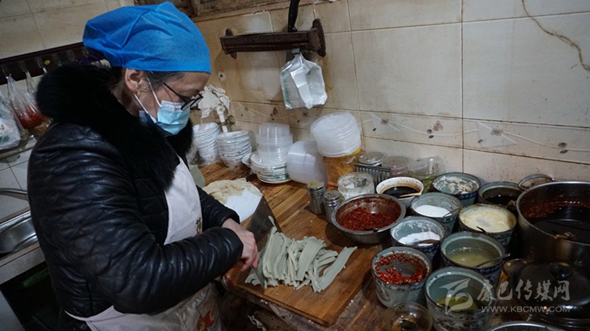 打開門店,鋪好案板,取出昨晚“拷”好的涼粉,以快刀嫻熟將其切條,清點(diǎn)一下碗筷,在手機(jī)端打開“餓了么”App等待客人訂餐的信息……。上午8點(diǎn),53歲的辜良虹又在對(duì)傳統(tǒng)味道的雕琢中,開啟了開心的一天。這12年來(lái),大多數(shù)康定市民的味蕾上,都留下了這種開心的記憶。