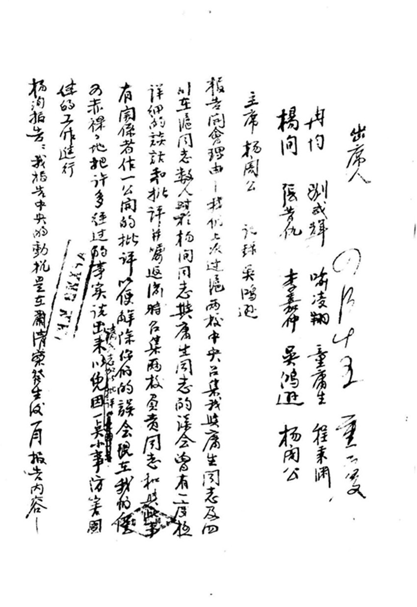 記者發(fā)現(xiàn),當(dāng)時(shí)每位參會(huì)者的發(fā)言都被詳細(xì)記錄,且在每位同志發(fā)表批評(píng)意見后,會(huì)議記錄者還不厭其煩地寫下“童、楊接受”等文字。