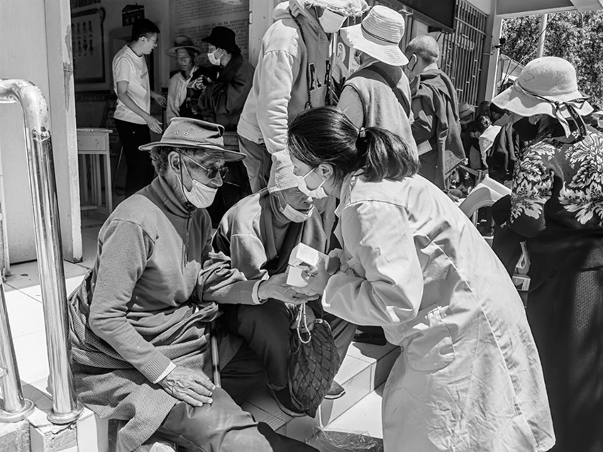 圖為醫(yī)護人員下鄉(xiāng)開展相關(guān)預防工作。
