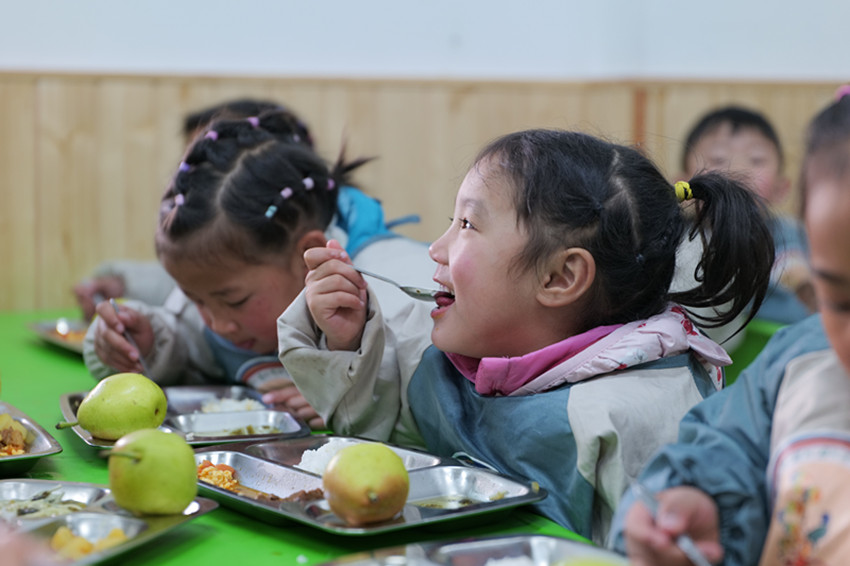 本網(wǎng)訊 排骨燒土豆、西紅柿炒雞蛋、紫菜雞蛋湯、酥梨……近日,在德格縣城關第一幼兒園,葷素搭配、選擇多樣、營養(yǎng)均衡的餐食深受孩子們喜愛。幼兒彭措占瑪說:“我最喜歡吃幼兒園的飯菜,可好吃了!”
